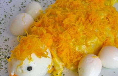 Una ensaladilla muy original, una gallinita con sus huevos...no te parece una idea genial de sorprender a tus peques....