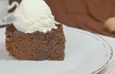 Más que un brownie diría que es una tarta. El interior se deshace en la boca y la cobertura lo hace espectacular. Si lo comemos frequito, es como un bombón de chocolate.