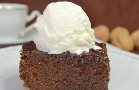 Más que un brownie diría que es una tarta. El interior se deshace en la boca y la cobertura lo hace espectacular. Si lo comemos frequito, es como un bombón de chocolate.
