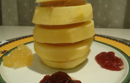 Manzana rellena de foie y mermelada