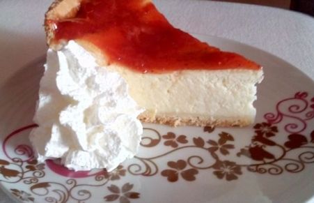 Tarta de requesón con mermelada de fresas