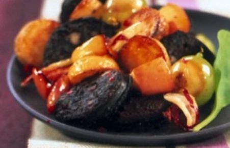 Morcilla negra en microondas con manzana y patatas