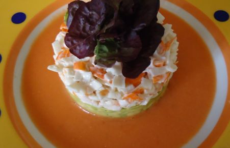 Busca todas las fotos que hemos recibido para esta receta de Aguacate y cangrejo en salsa de gazpacho.