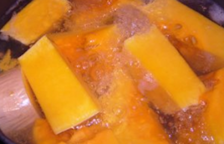 Es una tarta de calabaza deliciosa que se hace con pasta quebrada, que se hornea hasta que se dore a 150°C durante 10 minutos, mientras en un cazo cocemos la calabaza cortada en dados y añadimos cinco cucharadas de azúcar moreno y dos de nuez moscada que, una vez listo, trituraremos junto a dos huevos, un chorrito de nata líquida y un chorrito de leche condensada. La mezcla se vertirá sobre el molde que previamente hemos dorado y hornearemos la base y la pasta de calabaza a 200°C durante media hora. Una vez listo y antes de servir, vertemos un tarro de mermelada de calabaza, que aporta el dulzor que hubiera dado un extra de azúcar que no hemos echado para dar el toque de la mermelada.