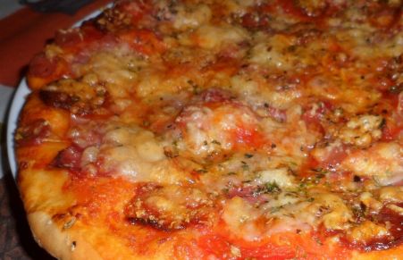 Pizza casera de jamón y chorizo