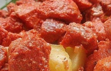 Plato tìpico de Galicia, un picadillo de carne adobada y que se prepara con distintos tipos de carne magra del cerdo, como pueden ser el jamón, el lacón, el raxo(lomo) etc. Conviene dejarla en adobo preferiblemente desde el día anterior con el recipiente tapado, y durante el tiempo de adobo removerla de vez en cuando para que agarre bien todo el sabor. Este adobo se utiliza principalmente para el embutido de chorizos caseros en época de matanza, se pica la carne muy picadita y luego se rellenan con la tripa del cerdo. En este caso, la he preparado salteada con un poquito de aceite y acompañada de unas patatas fritas, la manera en la que se sirve en los mesones gallegos cuando nos vamos de tapeo.