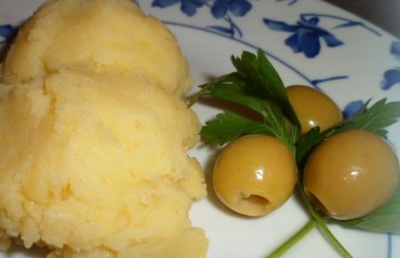 Cocemos las patatas unos 45 minutos las dejamos templar y después las pelamos y todavía calientes las machacamos, luego las dejamos enfriar, y le rayamos la cebolla o se la troceamos muy pequeña que no se note, después le ponemos la sal, el aceite un buen chorreón como tres cucharadas mas o menos y el vinagre ya a gusto de cada uno.