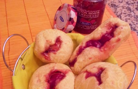 Se trata de unos panecillos elaborados con harina de mandioca y queso, que te sorprenderán cuando los comas con su relleno fundido de queso contrastando con el dulzor de la mermelada