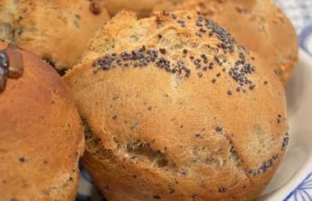 Panecillos de aceitunas negras, ajo, tomillo y semillas