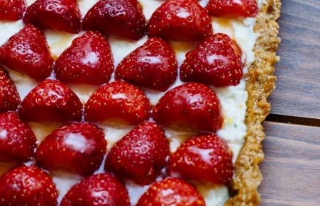 Como la fresa sigue estando en plena temporada, no quería desaprovechar la oportunidad de hacer otro postre basándome en ella, aunque si quieres puedes sustituir las fresas por cualquier otra fruta que te guste más y así podremos además hacer esta tarta cualquier época del año.