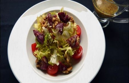 Ensalada templada de mollejas de pato confitadas con vinagreta de mostaza