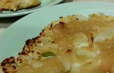 Coliflor asada con Bechamel de Cebolletas al Vino