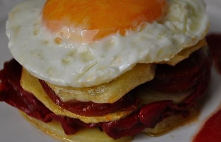 Timbal de patatas a la riojana con sombrero