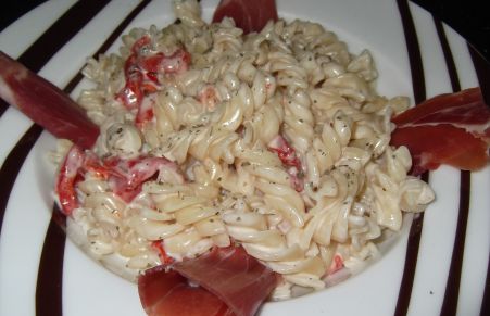 Pasta con salsa gorgonzola y pimientos