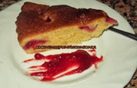 Un bizcocho con fresitas y la verdad es que esta delicioso uhmmm.