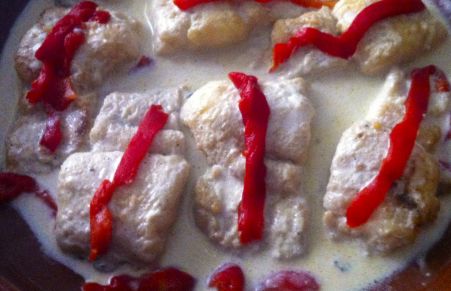 Merluza con salsa de nata a la pimienta. Suave y sabrosa.