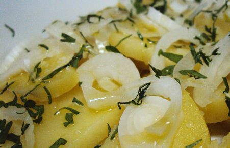 Simplemente patatas y cebolleta en su versión original, o añadiendo algunos ingredientes más ..., obtenemos una sana y sabrosa ensalada, que no va a dejar a nadie indiferente.