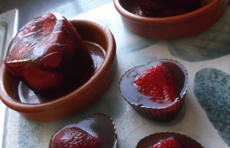 La verdad es que la idea de unir el vino dulce con la gelatina y las fresas semi cocidas le da un toke muy especial.
