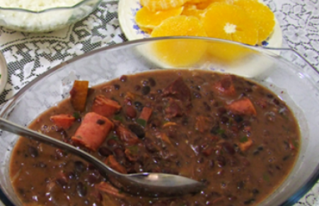 La feijoada es uno de los platos brasileños más típicos y debemos servirla con: salsa gaucha, coles, harina de yuca, arroz blanco, rodajas de naranja y una rica caipirinha!