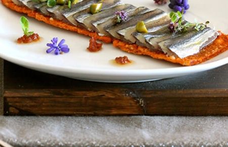 Boquerones a la Sal sobre Crujiente de Pimentón