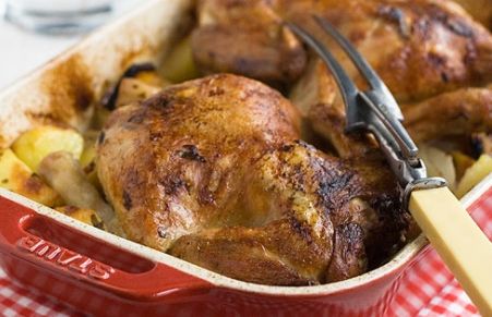 Pollo asado con patatas adobadas