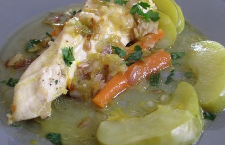 Supremas de pollo con manzana, zanahoria y jugo de naranja