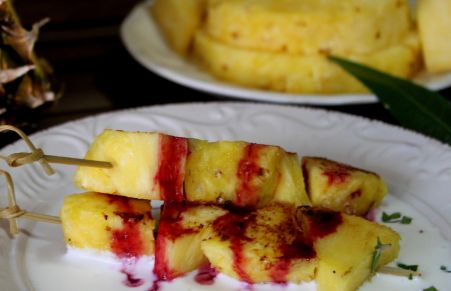 Busca todas las fotos que hemos recibido para esta receta de Piña a la plancha con sopa de yogur.