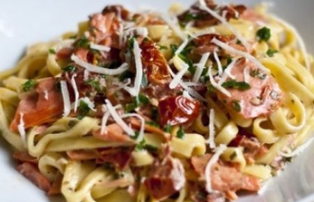 Busca todas las fotos que hemos recibido para esta receta de Pasta con salmón ahumado y tomates secos.