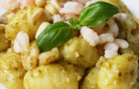 Busca todas las fotos que hemos recibido para esta receta de Ñoquis al pesto con gambas y piñones.