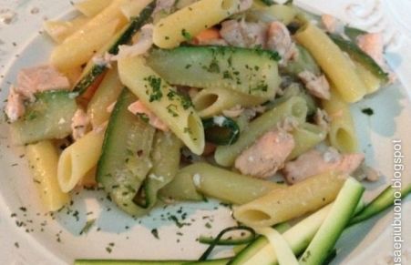 Pasta con salmón y calabacín