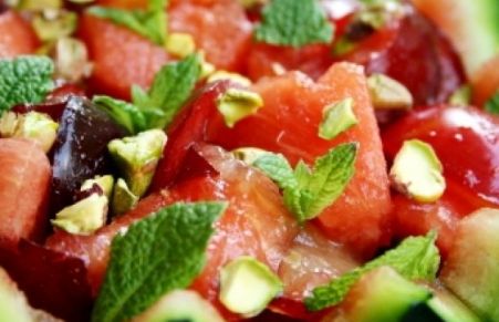 Busca todas las fotos que hemos recibido para esta receta de Macedonia de sandía, ciruelas, pistachos y menta.
