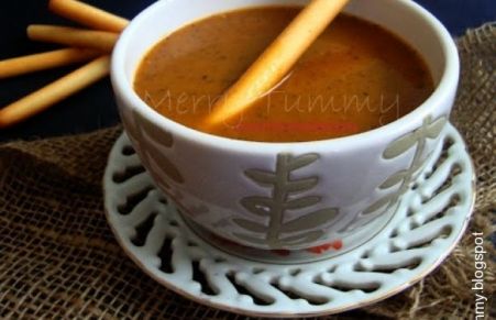 Una sopa de tomate con un profundo sabor de hierbas y especias.