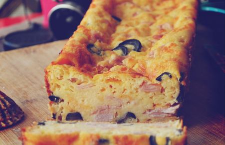 Para los que nos gusta comer bien y diferente cuando estamos bajo el sol, aquí dejo esta receta de plum cake de jamón y aceitunas.