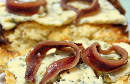 Tosta de queso azul y anchoas