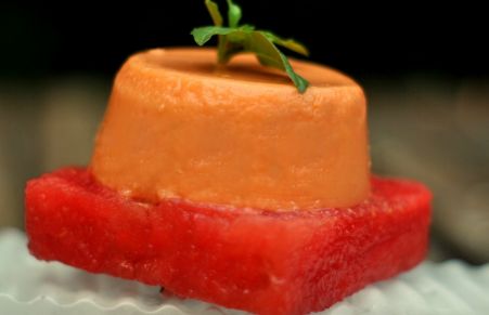 Aquí os presento una manera muy refrescante pero sobre todo original de preparar un rico gazpacho, preparado con sandía pero en forma de mousse.
