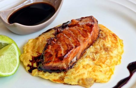 Salmón en salsa de soja y lima sobre tortilla de arroz