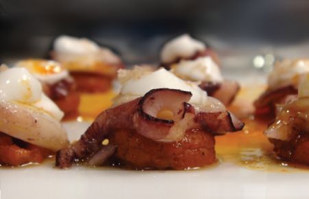 Pulpo con puré cremoso de patata, pimienta roja y mantequilla Cadí