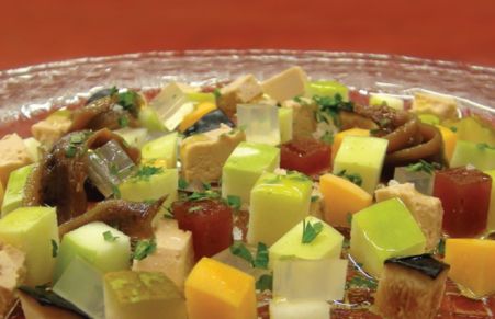 Busca todas las fotos que hemos recibido para esta receta de Mosaico gaudinià de Queso Urgèlia y membrillo con manzana de Girona, pera de Lleida y avellanas de Reus.