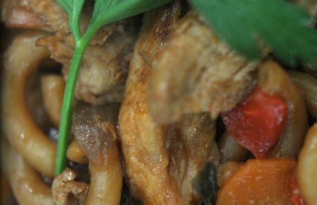 Hola a todos....Aquí os traigo una especie de fideuá, con un estilo entre oriental y mediterráneo, preparado con vegetales y pollo, que ha quedado maravilloso!! Lo de falso y a mi manera es porque no se ciñe a la receta tradicional y lo he adaptado a lo que tenía en casa en ese momento...