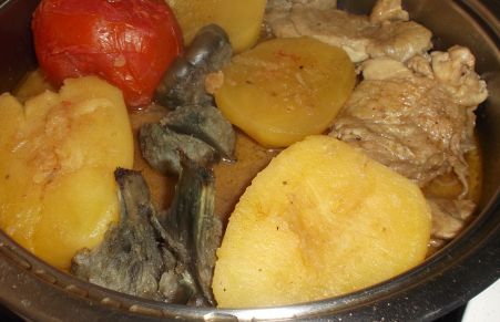 Contramuslos de pollo con patatas y alcachofas