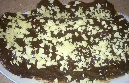 Se hace el chocolate y una masa con azucar , mantequilla y clara de huevo. Se moja la galleta en leche y se le añade a una chocolate y a otra la mezcla de mantequilla alternativamente. Cuando ya tengamos la base se le echa chocolate por encima hasta cubrir todas las galletas y para terminar se le pone trozitos de chocolate blanco por encima.