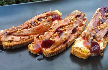 Tostada de anchoa y pate con mermelada