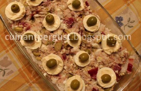 He bautizado esta sencilla y sabrosa ensalada de arroz con el nombre de mi madre, porque es la que ella ha hecho desde siempre. Un pequeño homenaje a la persona de la que he aprendido casi todo lo que sé.