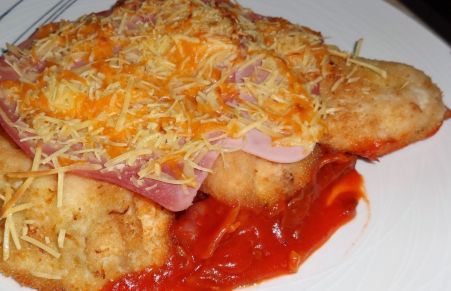 Delicioso pollo empanado y acompañado de sabores muy característicos.