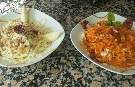 Busca todas las fotos que hemos recibido para esta receta de spagetis con roque y con chorizo y tomate.