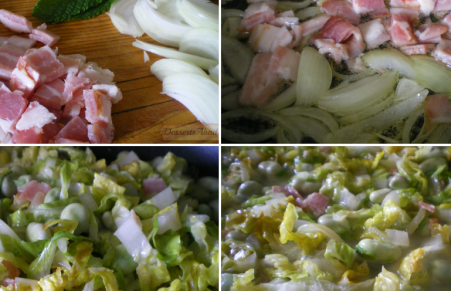 Sabrosa a la par de sencilla: unos tagliatelle con habitas frescas, su beicon y su lechuga troceada, que hacen de este plato una receta muy sana y llena de color.