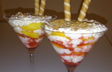 Copas de arroz con leche y melocotones