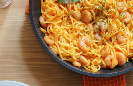 Busca todas las fotos que hemos recibido para esta receta de Spaghetti con gambas y chili dulce.