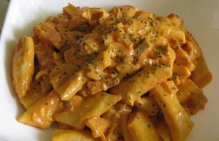 Macarrones con una salsa mucho más ligeray suave que la carbonara sólo con nata.