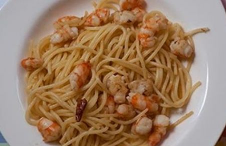 Hoy traigo unos fáciles y riquísimos espaguetis con langostinos y un toque picante de guindilla.